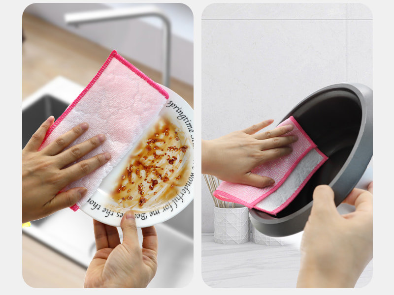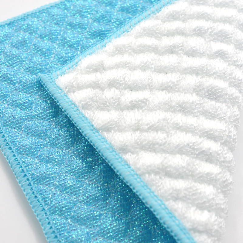 Kain penyental gentian buluh Sutera berwarna, Satu bahagian adalah kain pembersih berwarna-warni dengan keupayaan mengikis yang kuat, dan bahagian lain ialah Kain gentian buluh, yang memenuhi dua fungsi mengikis dan menyental pada satu sisi; Ia bebas minyak dan mempunyai penyerapan air yang kuat.Ia diperbuat daripada sutera berwarna-warni, dengan penampilan yang tinggi dan rawatan Zou di permukaan, yang menjadikan kain pembersih sutera warna dengan kuasa mengikis yang kuat mempunyai daya geseran yang lebih kuat, tetapi tidak menyakiti alat memasak; Ia mempunyai kesan pembersihan yang baik tanpa penyingkiran minyak.